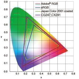 Odwzorowanie 99% przestrzeni barw Adobe RGB ColorEdge CX241 ma szeroki gamut kolorów i wyświetla aż 99% przestrzeni Adobe RGB, tak więc zdjęcia wykonane w RAWach mogą być przekonwertowanie do Adobe RGB zgodnie z intencjami autora, a z kolei zdjęcia zrobione w Adobe RGB będą wyświetlane poprawnie. Kolory na zdjęciach przedstawiających błękitne niebo czy żywą zieleń lasów będą wyświetlane z wiernością, której nie oddadzą monitory z przestrzenią kolorów sRGB. Szeroki gamut monitora oznacza również, że będzie on w stanie wyświetlić prawie w całości przestrzenie CMYK ISO-coated i US web-coated, wykorzystywane w procesie druku. |