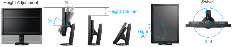 Ergonomiczna stopka Ergonomiczna stopka z regulacją odchylenia w płaszczyźnie poziomej i pionowej, zmianą wysokości i możliwością pracy w trybie portretowym pozwala na umieszczenie ekranu w najbardziej dogodnej pozycji. |
