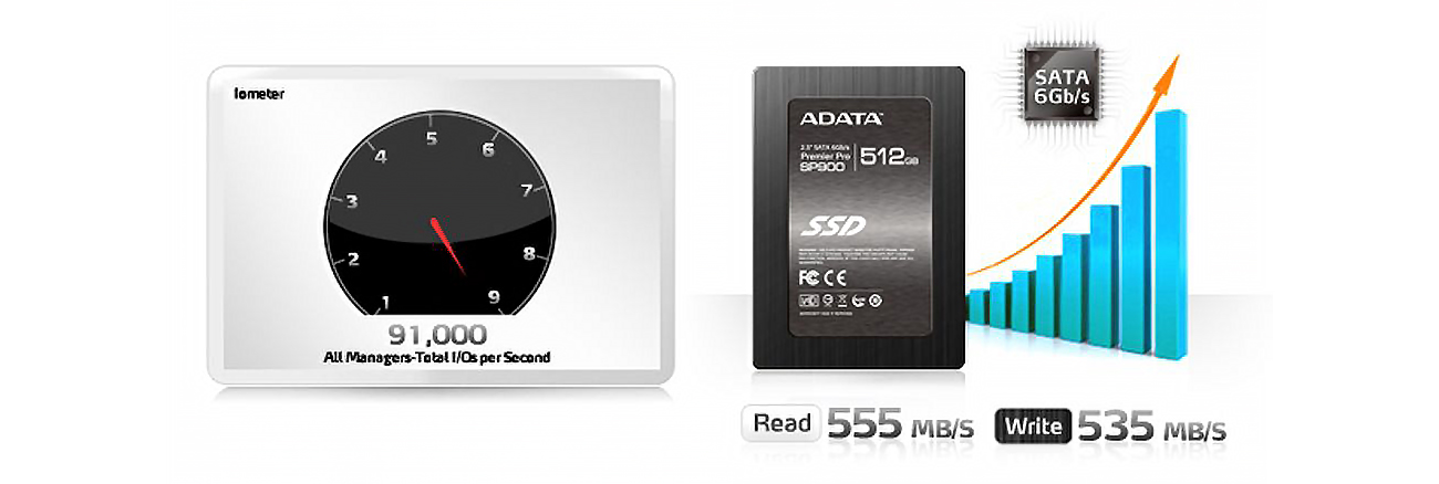 Maksymalny odczyt i zapis sekwencyjny dysku Premier Pro SP900 wynoszą 555/535 MB/s, z maksymalnymi prędkościami 4k zapisu losowego sięgającego 91,000 IOPS. Wysokie pojemności dysków sprawiają ze dysk premier Pro jest wyjątkową opcją modernizacji notebooków obsługujących standard SATAIII 6Gb/s
