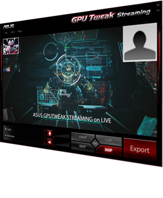 Narzędzie GPU Tweak do strumieniowania pozwala na dzielenie się na bieżąco tym, co dzieje się na ekranie, więc inni mogą na żywo obserwować rozgrywki. Do okna strumieniowania można nawet dodać przesuwający się tekst, obrazy i zdjęcia z kamery internetowej.