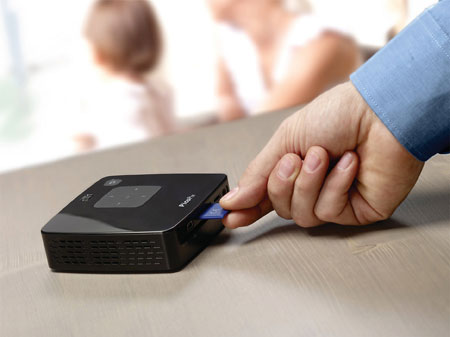 Zintegrowany odtwarzacz MP4 obsługuje wszystkie popularne formaty audio i wideo. Dzięki temu projektor kieszonkowy PicoPix to jedyne w swoim rodzaju urządzenie odtwarzające materiały zapisane w pamięci wewnętrznej 2 GB lub w pamięci USB, a także na różnego rodzaju kartach pamięci. |