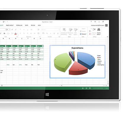 Podczas podróży możesz tworzyć i edytować pliki programów Word, Excel oraz PowerPoint. Wiadomości e-mail i pozycje kalendarza możesz synchronizować w programie Outlook. W pamięci rozszerzanej do 64 GB i w usłudze SkyDrive możesz zapisywać dokumenty oraz kontynuować pracę od tego samego miejsca, w którym została przerwana.