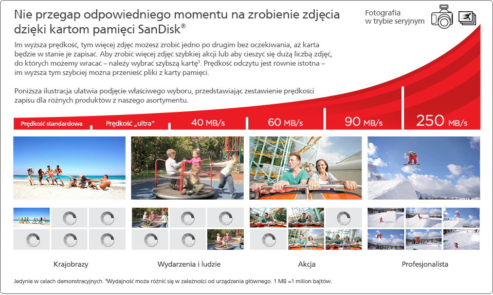 2Zwykłe karty pamięci oferują prędkość zapisu do 5 MB/s. 1 MB=1 000 000 bajtów.