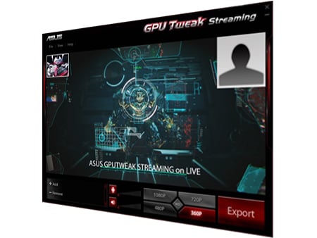 Narzędzie GPU Tweak do strumieniowania pozwala na dzielenie się na bieżąco tym, co dzieje się na ekranie, więc inni mogą na żywo obserwować rozgrywki. Do okna strumieniowania można nawet dodać przesuwający się tekst, obrazy i zdjęcia z kamery internetowej.