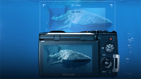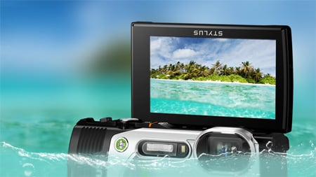 TG-850 to pierwszy aparat klasy Tough, który mimo uchylnego LCD, jest niezwykle smukły i zachowuje kompaktowe gabaryty. Rób fascynujące zdjęcia – wybierz dowolny kąt fotografowania. Uwiecznij swoich przyjaciół, którzy nurkują w morzu lub basenie. Dzięki uchylnemu LCD sam nie musisz schodzić pod wodę. |