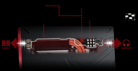 ROG GR8 wykorzystuje rozwiązanie SupremeFX zapewniające realistyczny dźwięk - osłona EMI, wysokiej jakości komponenty i narzędzia audio tworzą nowy wymiar rozgrywki |