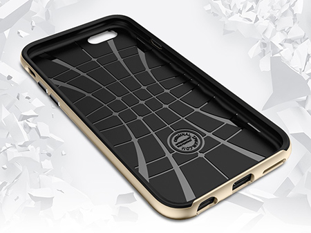 Środkową część obudowy pokrywa teksturowana powłoka zapewniająca pewny chwyt. Dzięki błyszczącym akcentom na logo Spigen oraz linii podziału uzyskano elegancki, nowoczesny wygląd.