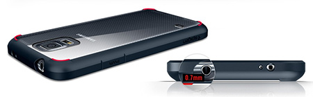 Osłona ekranu zapewniona jest przez delikatną krawędź - o wysokości zaledwie 0,8 mm – podnoszącą telefon ponad powierzchnię, dzięki czemu pozostaje czysty i wolny od zarysowań.