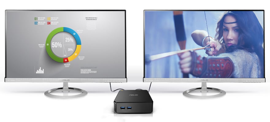 ASUS Chromebox zapewnia dwupasmową łączność bezprzewodową 802.11 b/g/n, co przekłada się na szybkie działanie stron internetowych i innych usług online. Cztery porty USB 3.0, Bluetooth 4.0 i czytnik kart SD ułatwiają wykonywanie codziennych zadań, takich jak przesyłanie plików, zdjęć i multimediów. Wyjścia HDMI i DisplayPort umożliwiają podłączenie dwóch monitorów, zapewniając więcej miejsca na pracę i zabawę.