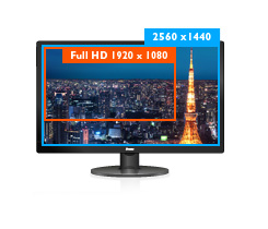 ![]() WQHD Dzięki rozdzielczości natywnej WQHD 2560 x 1440 (3,7 megapiksela) ten panel wyświetla niemal 77% więcej informacji niż w przypadku rozdzielczości Full HD. |
