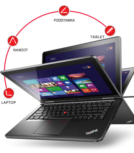 ThinkPad Yoga zapewnia  niezbędną w biznesie  elastyczność . Jego 12,5-calowy wyświetlacz z wysoką rozdzielczością FHD i technologią wielodotyku można obracać w zakresie 360 stopni, wybierając jeden z czterech trybów pracy: laptop, tablet, namiot oraz podstawka. Bazujący na legendarnej niezawodności produktów ThinkPad i oferujący szereg zabezpieczeń oraz funkcji przydatnych w biznesie, ThinkPad Yoga jest  najnowocześniejszym biznesowym ultrabookiem działający w wielu trybach pracy.