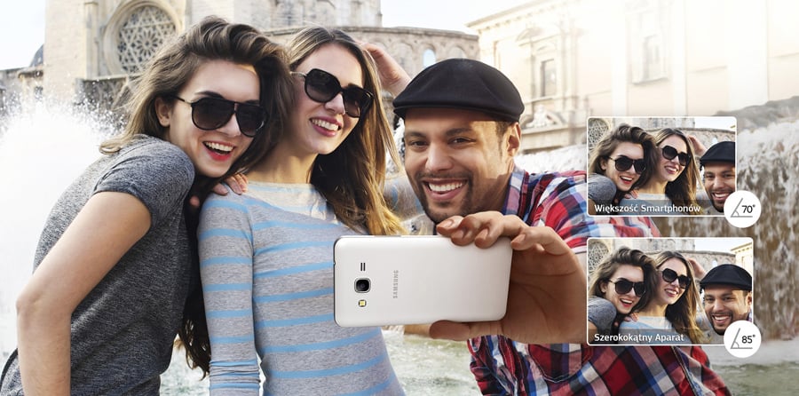 Selfie ze znajomymi nigdy nie wyglądały lepiej. GALAXY Grand Prime wyposażony jest w przednią kamerę 5 Mpix o szerszym obiektywie. Działa pod kątem 85 stopni i sprawia, że uchwycisz w kadrze większa liczbę osób, a także więcej szczegółów tła. Możesz zostawić wysięgnik do selfie w domu. Wysoka rozdzielczość sprawia, że zdjęcia są ostre i pełne detali. Aż chce się nimi podzielić ze światem!