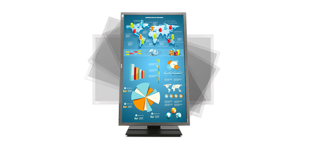Podstawka Acer ErgoStand pozwala ustawić idealny kąt patrzenia, poprzez łatwe dostosowanie wysokości, odchylenie i obrócenie ekranu. Dodatkowo podstawka ErgoStand umożliwia niezwykle proste ustawienie monitora w pozycji pionowej.