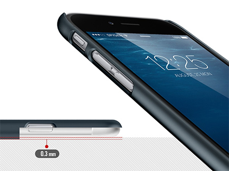 Precyzyjne wycięcie na logo Apple wypełnione jest folią zabezpieczającą przed porysowaniem obudowy telefonu. Folia jest zintegrowana z etui, dzięki czemu nie wypadnie i nie poluzuje się w trakcie użytkowania. Dzięki matowemu wykończeniu Thin Fit uzyskano świetną odporność na zabrudzenia, zachowując jednocześnie elegancki, nowoczesny wygląd.
