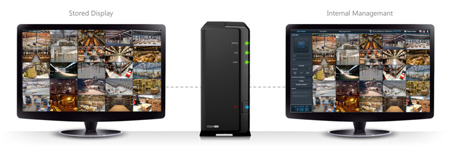 Podgląd na żywo i odtwarzanie Synology VS240HD ułatwia wyświetlanie podglądu na żywo i odtwarzanie nagrań wideo do celów monitoringu. W powiązaniu z dowolnym serwerem NAS firmy Synology VS240HD udostępnia podwójne wyjście wideo HDMI dla maksymalnie 24 kamer IP o jakości HD działających w sieci. Nagrania na serwerze NAS firmy Synology można łatwo pobierać, a także przesyłać strumieniowo za pośrednictwem VS240HD do monitorów prezentujących wiele ekranów, co przydaje się szczególnie w przypadku dużych wdrożeń.