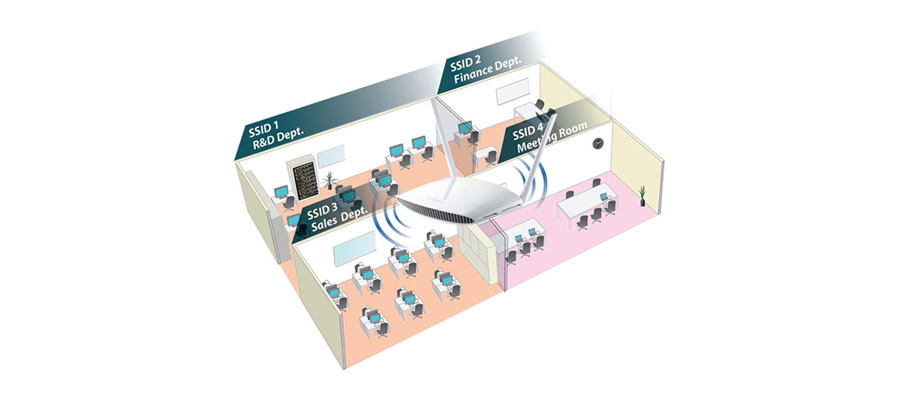 W trybie punktu dostępu router BR-6428nS v3 umożliwia stworzenie do 5 oddzielnych sieci bezprzewodowych. Dzięki temu możliwe jest przypisanie użytkowników do odpowiednich grup.