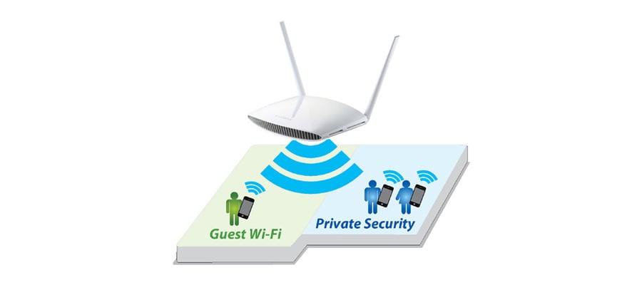 Router BR-6428nS v3 umożliwia stworzenie sieci typu "Gość", która jest odizolowa od sieci podstawowej.