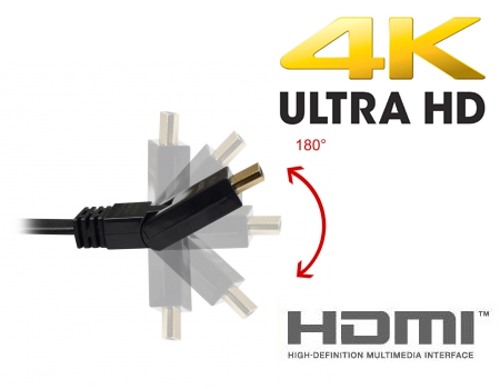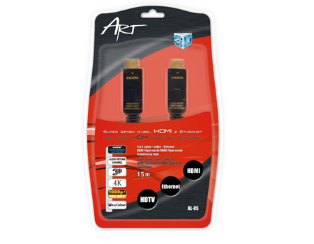 HDMI High Speed with Ethernet. Wysokiej jakości cyfrowy przewód 3 w 1: audio + video +Ethernet. Pozłacane końcówki. Funkcja Automatic Content Enchancement. Obsługa obrazu trójwymiarowego 3D oraz kanału Ethernet. Dwukierunkowa komunikacja Audio Return Chan. Kabel kątowy - ułatwia podpięcie TV, monitora pod dowolnym kątem. Przewód płaski dzięki czemu łatwy do umieszczenia za szafą czy pod dywanem.