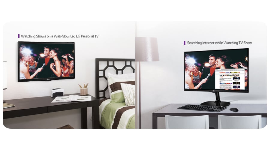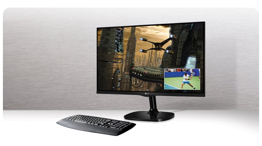 Monitor LG 24MT77D-PZ posiada podwójne przeznaczenie. Jest to połączenie monitora z telewizorem, dzięki czemu użytkowanie stanie się jeszcze bardziej komfortowe. Oglądaj mecz oraz film sensacyjny w tym samym czasie, pozwala na to tryb PIP, który daje możliwość oglądania dwóch widowisk na jednym ekranie.