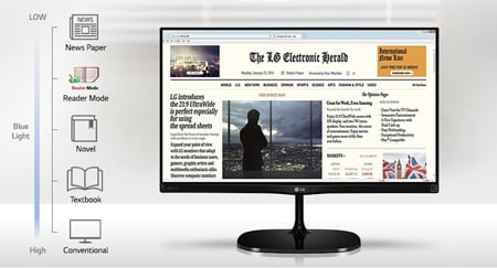 Tryb czytnika minimalizuje niebieską poświatę wytwarzaną przez podświetlenie LED, zapewniając optymalne warunki do czytania tekstów. Dzięki temu można komfortowo czytać teksty wyświetlane na monitorze - przez dowolnie długi czas.