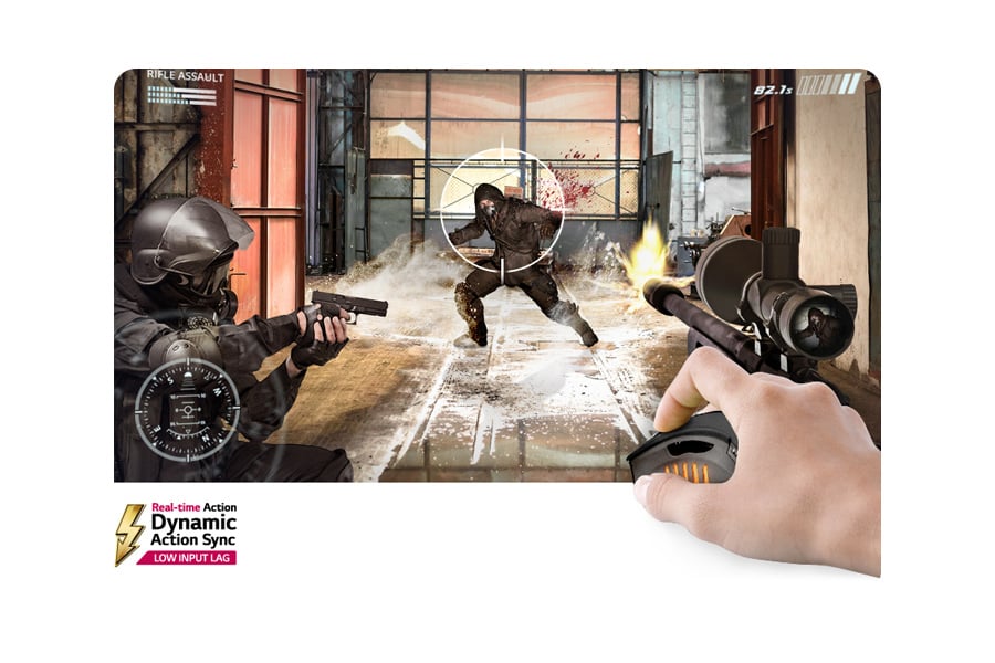 Przy mniejszym opóźnieniu sygnału wejściowego rosną szanse na zwycięstwo, ponieważ można szybciej reagować na zdarzenia. Co więc zrobiła firma LG projektując monitor dla graczy? Tryb Dynamic Action Sync w monitorze 25UM57 minimalizuje opóźnienia, pozwalając na natychmiastowe atakowanie przeciwnika, co ma szczególne znaczenie w grach RTS. Dzięki trybowi Dynamic Action Sync można w pełni zsynchronizować zmysły z wydarzeniami na ekranie – a bez tego nie da się osiągnąć sukcesu w grach z wartką akcją.