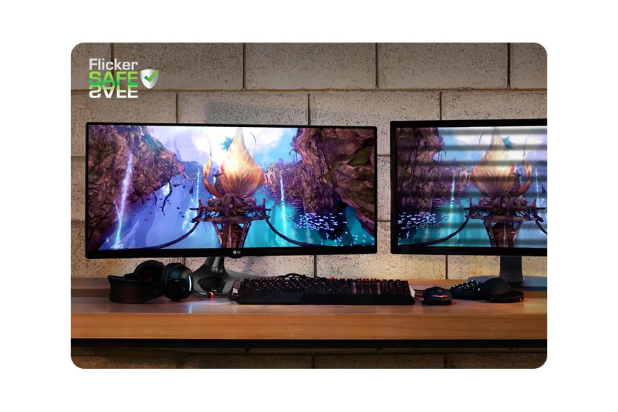 Na ekranie monitora 25UM57 wirtualne wyścigi oraz bitwy stają się wyjątkowo realistyczne. Dlatego część entuzjastów gier, korzystających z monitora 25UM57 poświęca zacznie więcej czasu na rozrywkę niż dotychczas. Firma LG uważa, że brak migotania ma kluczowe znaczenie dla ochrony wzroku podczas wielogodzinnej rozrywki lub pracy. Dlatego w monitorze 25UM57 zastosowała funkcję Flicker Safe i rygorystycznie sprawdziła jej skuteczność. (Opracowana przez firmę LG funkcja Flicker Safe jest zawsze włączona, dzięki czemu poziom migotania zostaje zredukowany prawie do zera.) Teraz można mieć pewność, że praca, gry, ani oglądanie filmów nie będą uciążliwe dla oczu.