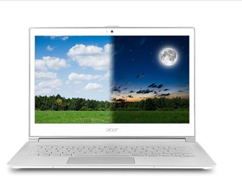 Szerszy ekran dotykowy WQHD o wysokiej rozdzielczości, w jaki jest wyposażony notebook Aspire S7, pozwala zobaczyć filmy i zdjęcia tak, jak chcieli je pokazać ich twórcy. Otwórz komputer do 180 stopni i naciśnij klawisz skrótu, a obraz obróci się, umożliwiając pokazanie zawartości ekranu innym osobom w wygodny sposób.