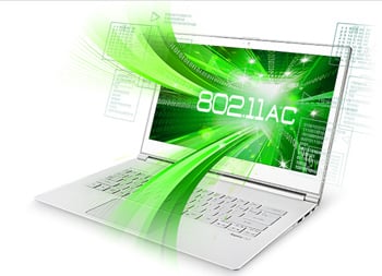 Dzięki zastosowaniu supernowoczesnej technologii bezprzewodowej 802.11ac działającej w trybie dwukanałowym nowy notebook Aspire S7 przesyła i odbiera dane w sposób bezprzewodowy nawet 3-krotnie szybciej niż przeciętny laptop. Pobieraj i przesyłaj filmy oraz korzystaj w dowolny sposób z internetu z zapierającą dech w piersiach prędkością. |