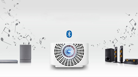 Projektor umożliwia bezpośrednie przesyłanie dźwięku poprzez Bluetooth do kompatybilnego systemu audio, jak np. kino domowe, słuchawki, czy przenośny głośnik. *Urządzenia innych producentów mogą nie być obsługiwane. |