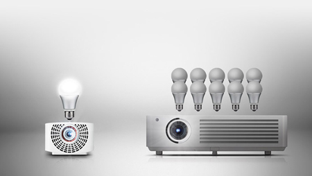 Okres żywotności lampy LED firmy LG wynosi 30 000 godzin. Przy korzystaniu z projektora 4 godziny dziennie lampa może działać nawet 20 lat. Wymiana lampy to już przeszłość. |