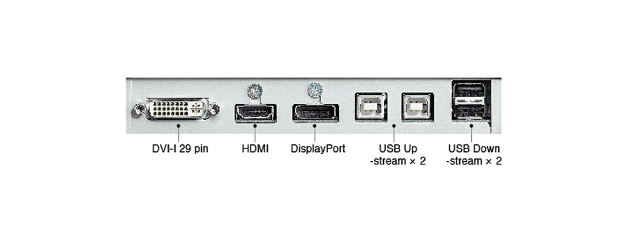 Monitor wyposażony jest w złącza DisplayPort, HDMI i DVI-I, które umożliwiają połączenie z różnymi rodzajami kart graficznych. Wejście HDMI pozwala też na bezpośrednie podłączenie cyfrowego aparatu. Ponadto dostępne są 2 porty USB (upstream), pozwalające na jednoczesne podłączenie 2 komputerów, dzięki czemu nie ma potrzeby przepinania kabla USB przy korzystaniu z ColorNavigatora i przełączania pomiędzy komputerami.
