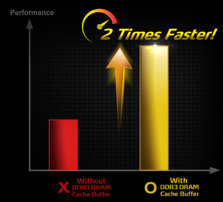Dyski SSD SX930 zostały wyposażone w Bufor pamięci Cache DDR3 DRA, co może zwiększyć prędkość losowego zapisu i odczytu 2-krotnie w porównaniu do tych dysków bez bufora.