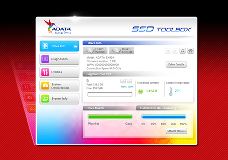 Oprogramowanie SSD Toolbox pozwala użytkownikom w sposób łatwy i wygodny konfigurować, optymalizować oraz monitorować ogólny stan dysków SSD, poziom wydajności, zdrowie napędu oraz pozostałą żywotność.
