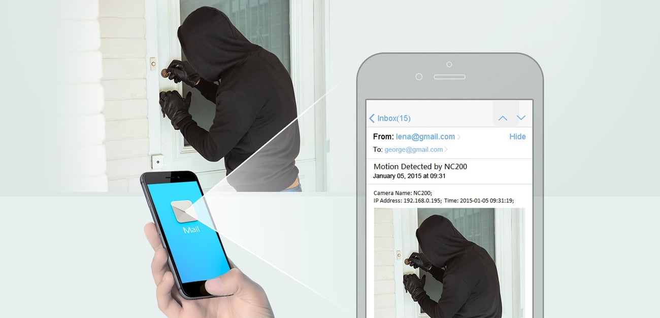 NC200 można skonfigurować do wysyłania natychmiastowych powiadomień przez e-mail lub FTP, gdy tylko ruch jest automatycznie wykryty. Pozwala to pozostać świadomym, co się dzieje w ważnych dla Ciebie miejscach, a to daje wielki spokój.