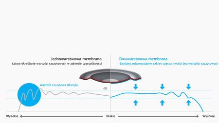 Podwójna membrana tłumi wibracje, redukuje hałas i zapewnia bogaty, zrównoważony dźwięk na całym paśmie częstotliwości. |