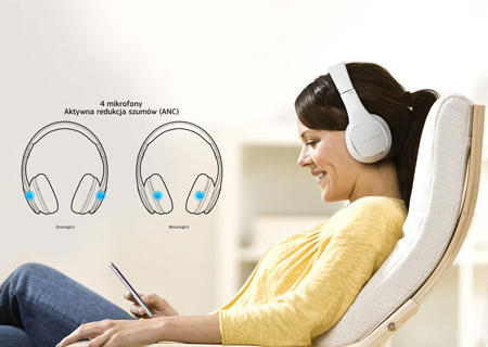 Wyposażone w zaawansowaną, dwuwarstwową membranę, bezprzewodowe słuchawki Level On zapewniają nie tylko studyjną jakość dźwięku ale także funkcję Aktywnej Redukcji Szumów (Active Noise Cancellation). Cztery wbudowane mikrofony, po dwa w każdym nauszniku, umożliwiają dokładne mapowanie otaczających Cię dźwięków. |