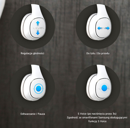 Wykorzystaj w pełni swoje słuchawki przy pomocy dotykowego panelu sterowania, który daje Ci dostęp do takich funkcji, jak aktywacja S-Voice, kontrola głośności, sterowanie utworami - wszystko to bez sięgania po sparowane urządzenie. |