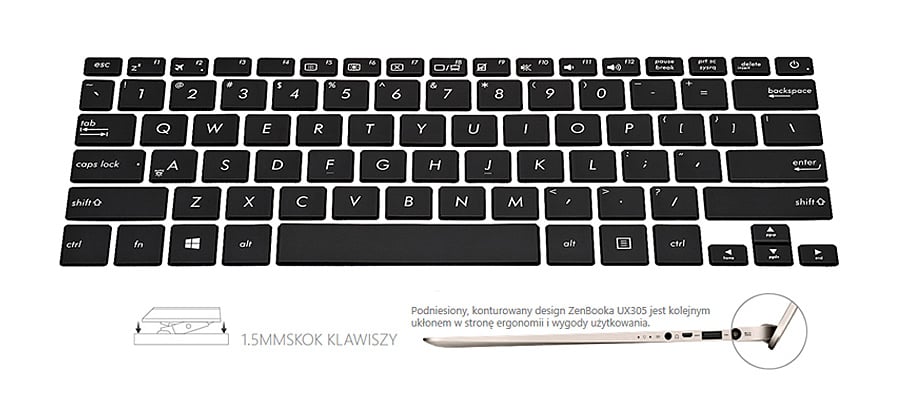 Pełnowymiarowa, jednoczęściowa klawiatura chiclet to arcydzieło ergonomii – to udoskonalony design z długim skokiem 1,5mm. Efektem jest solidna konstrukcja i wygoda użytkowania, które pozwolą na wielogodzinne sesje pisania.