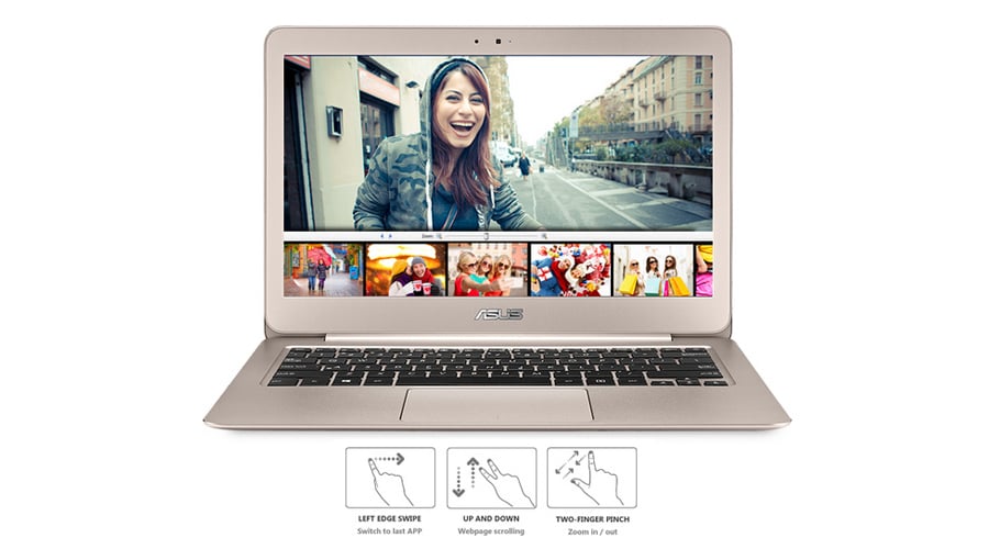 Wysoce precyzyjny touchpad ZenBooka UX305 został wyposażony w technologię ASUS Smart Gesture, która wykorzystując wiele z gestów Windows, którymi obsługujesz ekran dotykowy, daje wrażenie naturalnej i intuicyjnej obsługi. Touchpad korzysta z autorskiej technologii opracowanej na potrzeby ekranów dotykowych smartfonów, która oferuje wysoką czułość i niespotykaną dokładność.