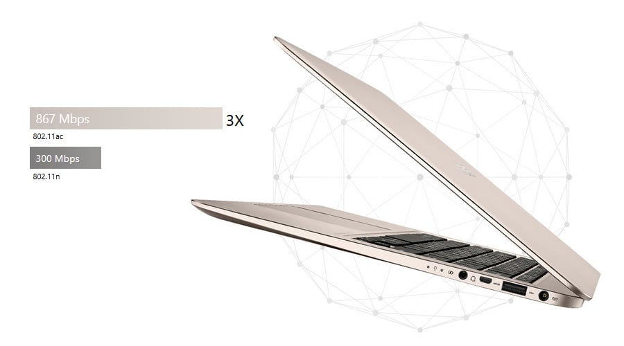 ZenBook UX305LA umożliwia szybsze połączenie dzięki najnowszemu Wi-Fi 802.11ac — z prędkością 867Mbit/s nawet trzykrotnie wyprzedza możliwości 802.11n! Bluetooth® 4.0 pozwoli na podłączenie ulubionych urządzeń bez większego ubytku w poziomie baterii. ZenBook UX305LA oferuje wolność działania – rób to co chcesz, gdziekolwiek jesteś!