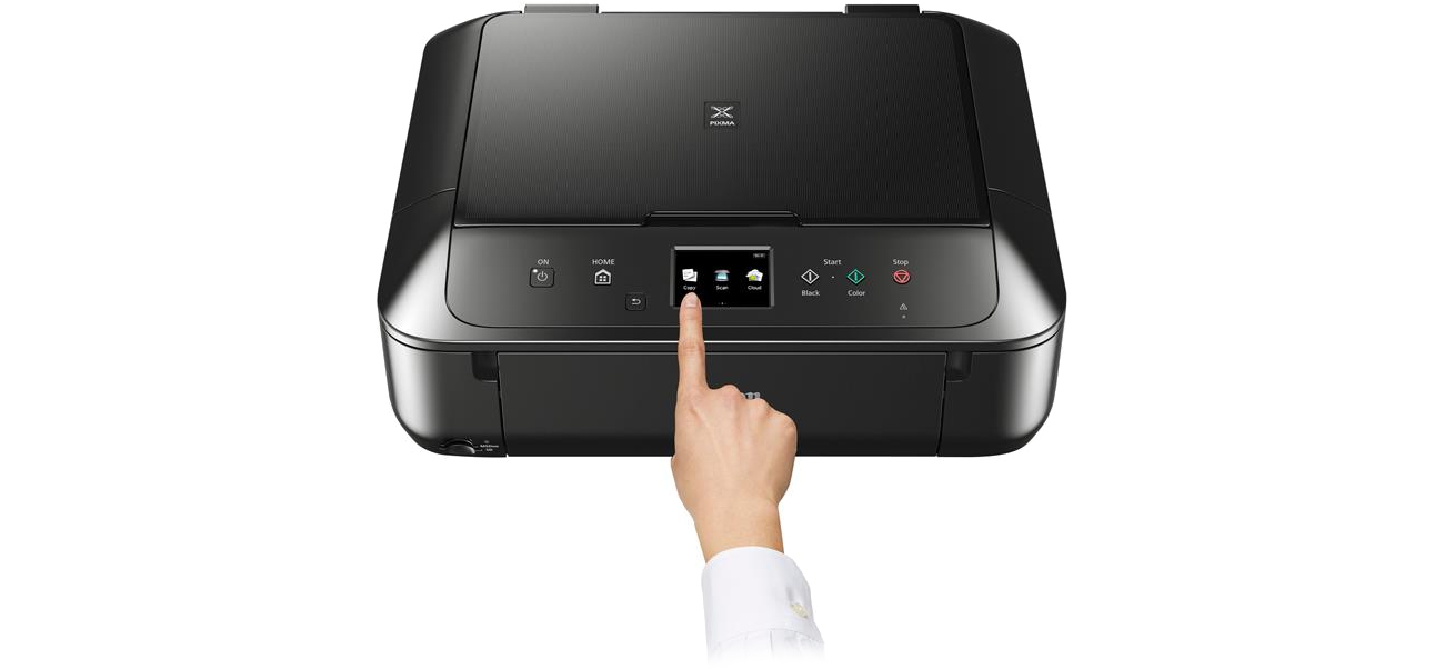 Aura wysokiej klasy. Drukowanie, kopiowanie, skanowanie i dostęp do zasobów w chmurze dzięki domowemu urządzeniu wielofunkcyjnemu, obsługiwanemu w łatwy, typowy dla smartfonów sposób. Duży, kolorowy ekran dotykowy o przekątnej 7,5 cm przyspiesza i ułatwia obsługę menu, wybieranie funkcji, przeglądanie zdjęć i korzystanie z usług w chmurze.