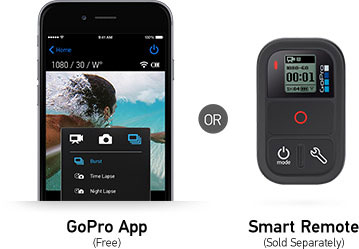 Prosty dostęp do wszystkich ustawień kamery tak jak jest to w przypadku innych kamer GoPro jest możliwy z poziomu darmowej aplikacji na smartfona lub specjalnego pilota*. W łatwy sposób możesz modyfikować takie ustawienia jak: rozdzielczość filmów, liczba klatek na sekundę czy tryb fotografowania.
