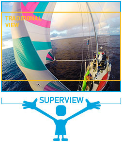 HERO 4 Session posiada Superview ™ Ekskluzywny tryb wideo zaprojektowany specjalnie przez GoPro dzięki któremu kąt patrzenia kamery jest niesamowicie szeroki. Dzięki temu trybowi już nic nie umknie twojej uwadze. |