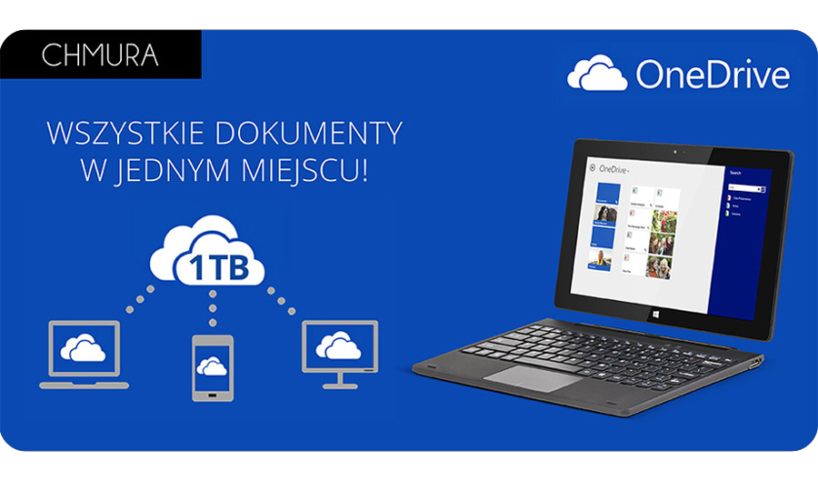 Roczna subskrypcja pakietu Office 365 to nie jedyna niespodzianka, którą otrzymasz przy zakupie EDGE 1083. Razem z pakietem biurowym, tablet oferuje 1 TB miejsca na dysku One Drive. Dzięki temu, nie musisz już się martwić o przestrzeń dyskową, na której będziesz przechowywał to, co dla Ciebie najważniejsze.