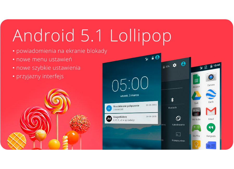 Jeśli lubujesz się w słodkościach oferowanych przez twórców Androida, kolejna odsłona tego systemu operacyjnego z pewnością przypadnie Ci do gustu. 5.1 Lollipop zaskakuje odświeżoną szatą graficzną, ożywionymi animacjami, nowym menu ustawień, zaktualizowaną funkcją szybkich ustawień oraz powiadomieniami na ekranie blokady. Jakby tego było mało, wersja 5.1 wprowadza dodatkowe usprawnienia względem swojego poprzednika 5.0, m.in. zwiększone zabezpieczenia przed kradzieżą czy stabilniejszą i szybszą pracę.
