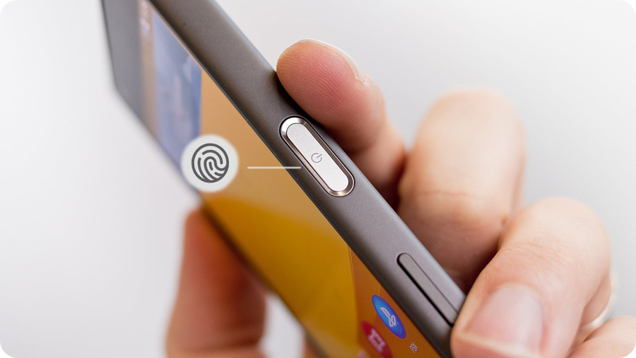 Przycisk zasilania smartfonu Xperia Z5 Compact ma zintegrowany czytnik linii papilarnych. Dla wygody umieszczono go z boku, więc wystarczy podnieść telefon, aby odblokować go jednym ruchem.