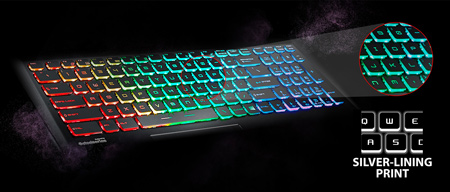 Zobacz więcej i działaj nocą z klawiszami w technologii silver lining print. Zobacz całe spektrum kolorów na klawiaturze SteelSeries i ciesz się wytrzymałymi klawiszami, bez obaw o zniszczenia. *Opcjonalne: tylko dla kilku językowych ustawień klawiatury |