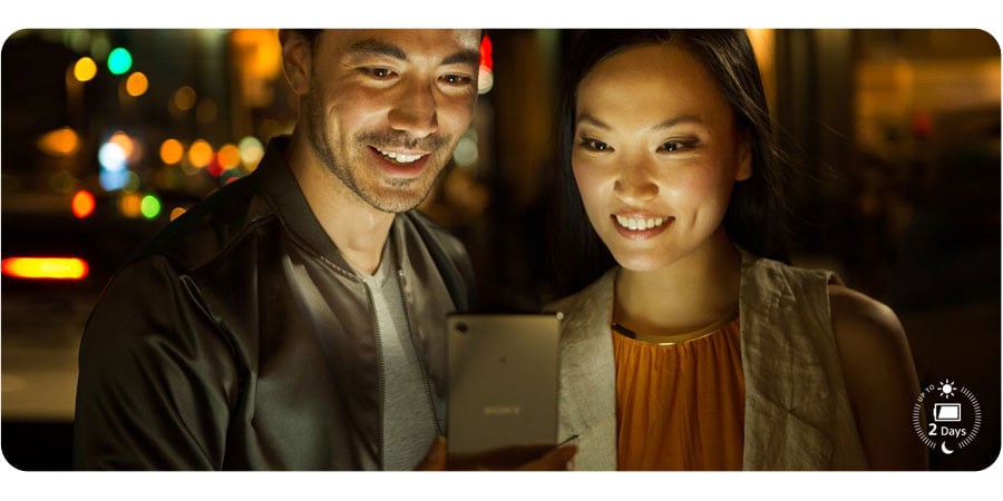 W tym wydajnym smartfonie o rozdzielczości 4K wykorzystaliśmy całą naszą wiedzę o zasilaniu, by stworzyć baterię, która wystarczy Ci nawet na dwa dni pracy**** bez ładowania. Możesz dłużej i bez obaw oglądać filmy, słuchać muzyki i rozmawiać. Kiedy bateria się wyczerpie, podłącz Xperia Z5 Premium do ładowarki Quick Charger, aby po 10 minutach ładowania móc korzystać z urządzenia przez wiele godzin.