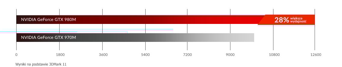 Zwiększona wydajność![]() Laptop wyposażony w kartę graficzną NVIDIA GeForce 980M jest o 28% bardziej wydajny w przetwarzaniu grafiki w porównaniu z NVIDIA GeForce 970M. Zapewnij sobie wysoką wydajność w swoich ulubionych grach, korzystając z dedykowanego układu graficznego. |