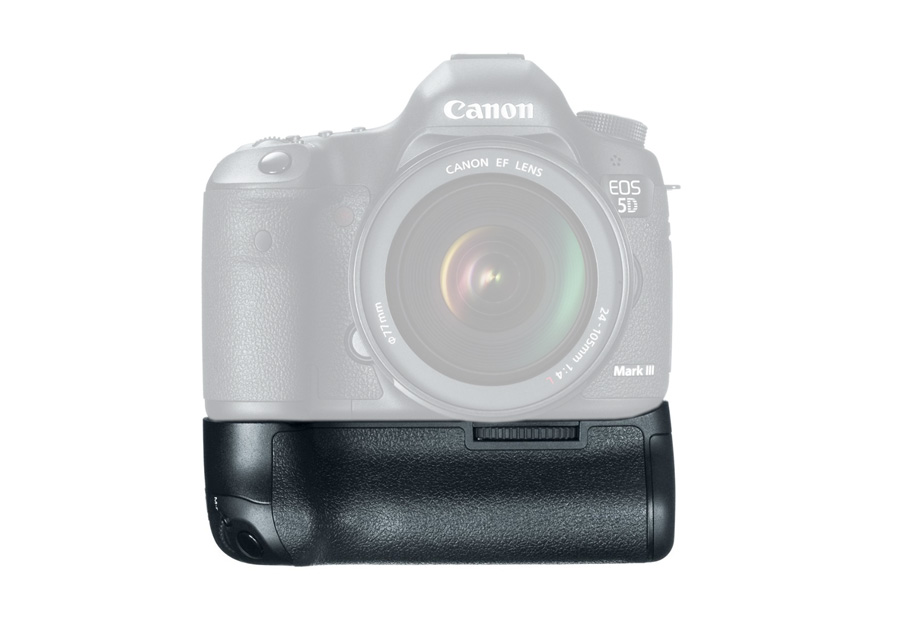 Dodanie uchwytu zasilającego do aparatu EOS 5D Mark III umożliwia wydłużenie czasu pracy akumulatora i poprawienie obsługi aparatu. Zyskaj komfortową pracę i pełną kontrolę zarówno w pozycji poziomej jak i pionowej.